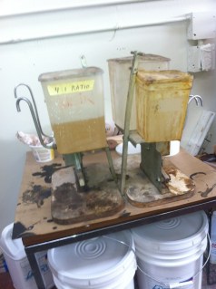 They look a little funky, but the tank-internals are now clean and the dispensing tubes have been replaced. The unit on the left is a 4:1 mix system, and the right is a 2:1. Now we can make as little as an ounce of mixed epoxy, or very quickly do big pints in quick succession as needed for hand-layup. http://www.michaelengineering.com/ Had to call these guys with a question the other day, and they were great.