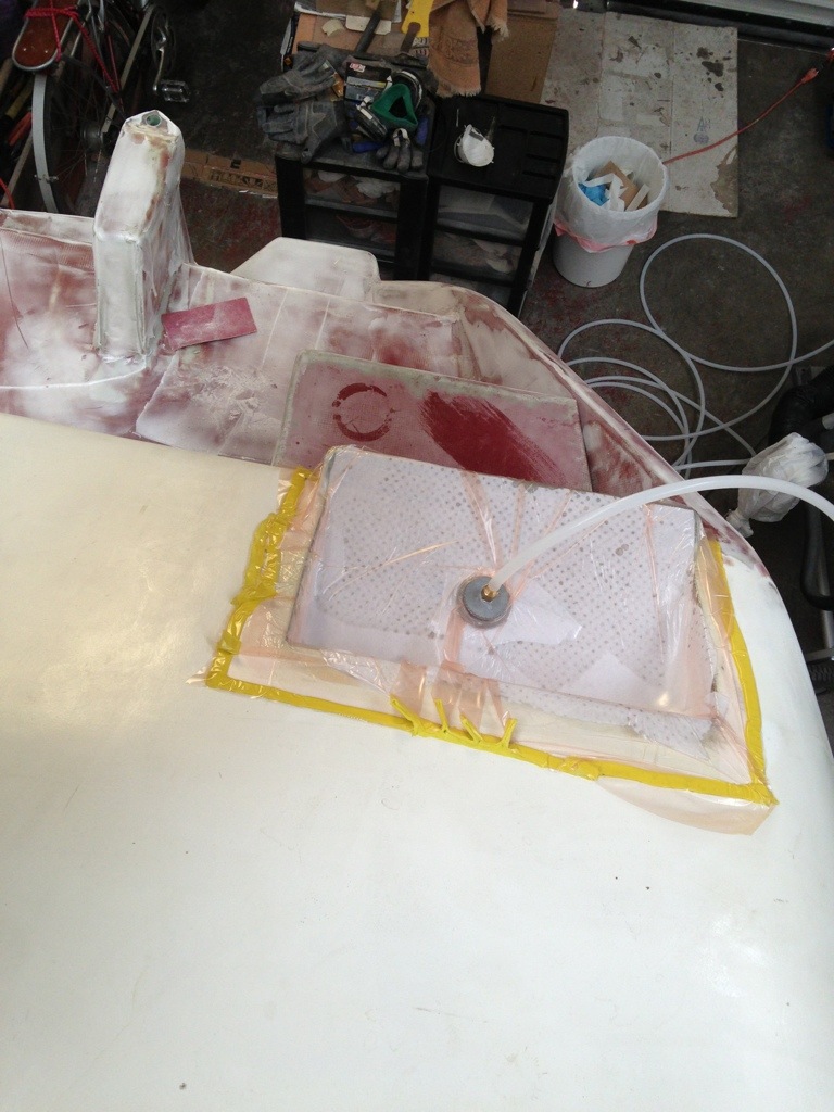 And while the next fill coat was drying I went back outside to the rear deck to finish building the steps. The top one is cut in to the cabin top. This was the first time trying the vacuum bagging on the hull, and it worked very well. Now it’s time to finish sand the whole rear deck area. Working back there will give some time to think about possible mounts for a Med-tie gangplank. Figure it’s good to think ahead to visiting foreign ports and comfortably stepping on the quay :)