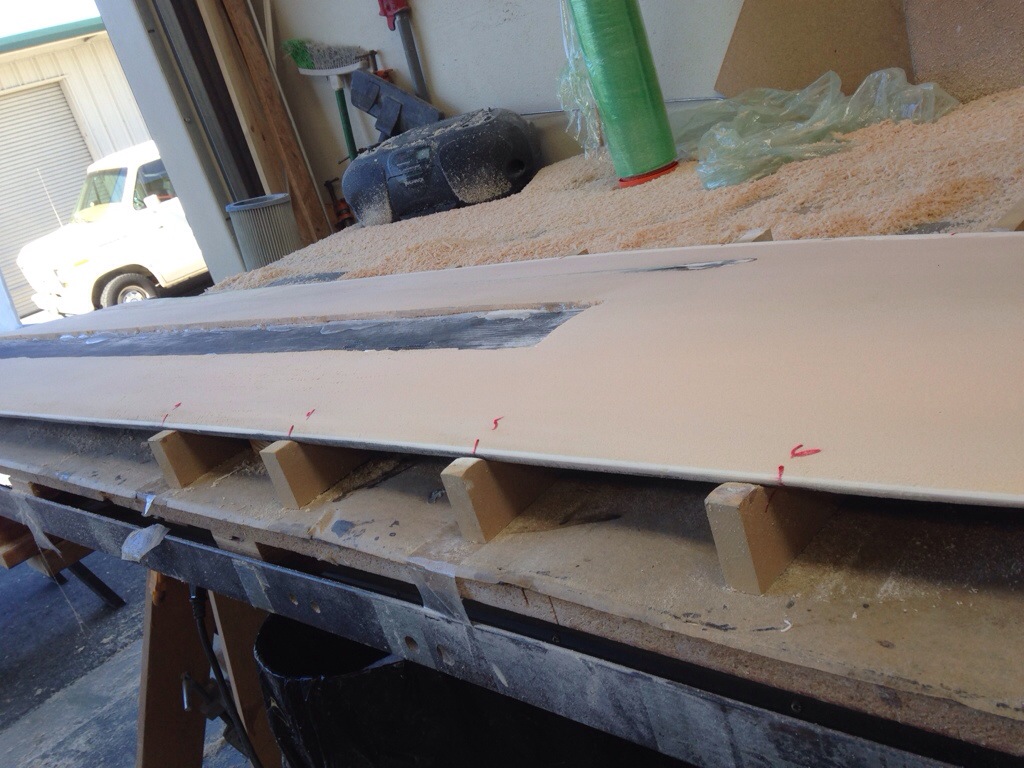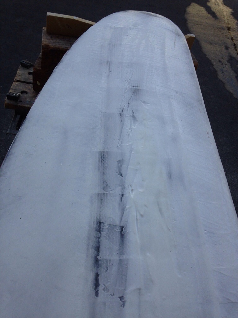 And underneath the white fairing compound you can just see the staggered layers of carbon uni.