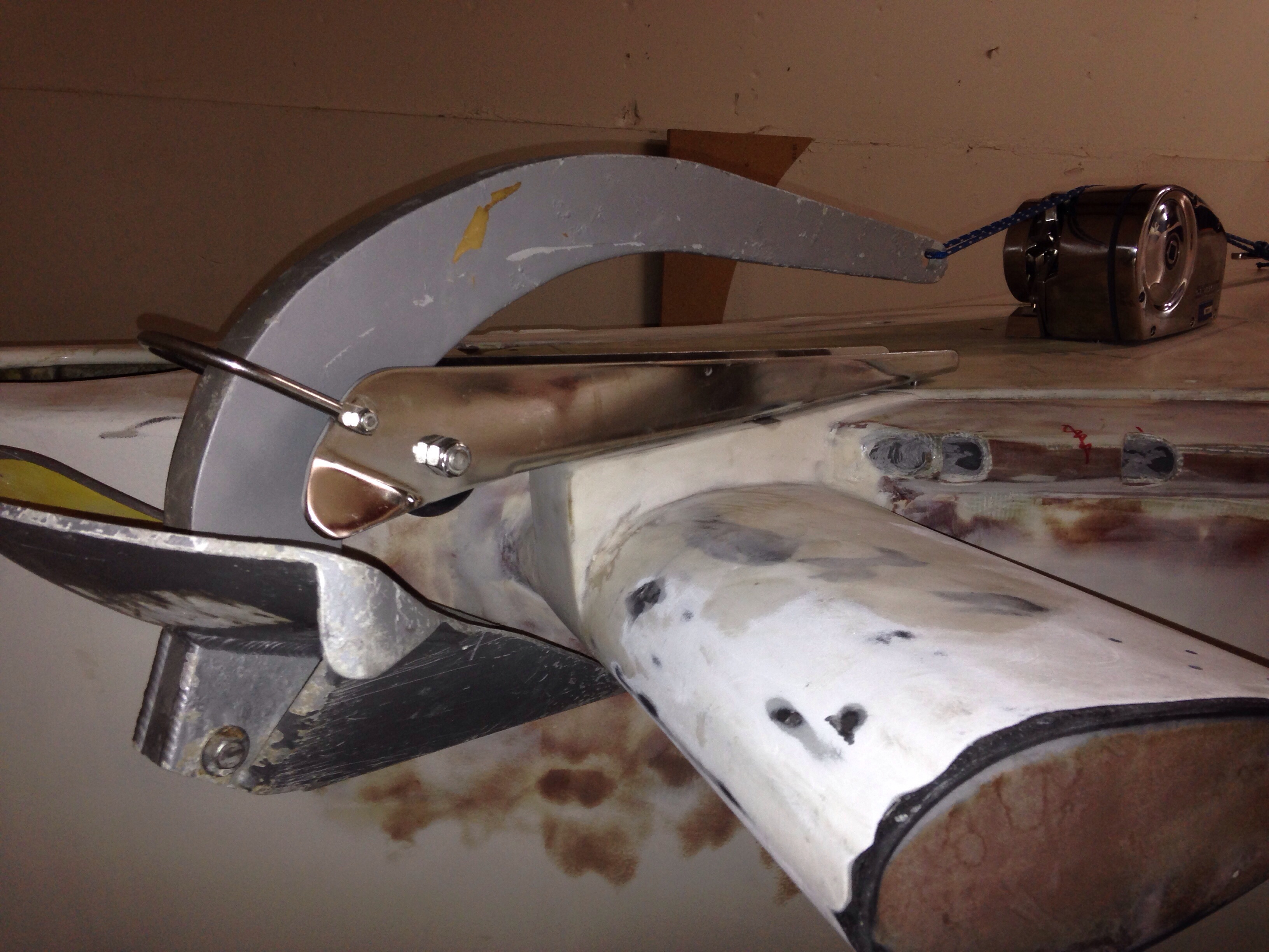 This past weekend’s project was mounting the anchoring gear. For the people who’ve visited the shop and wondered about the funny ‘Wings’ on the bow, these photos will explain it.