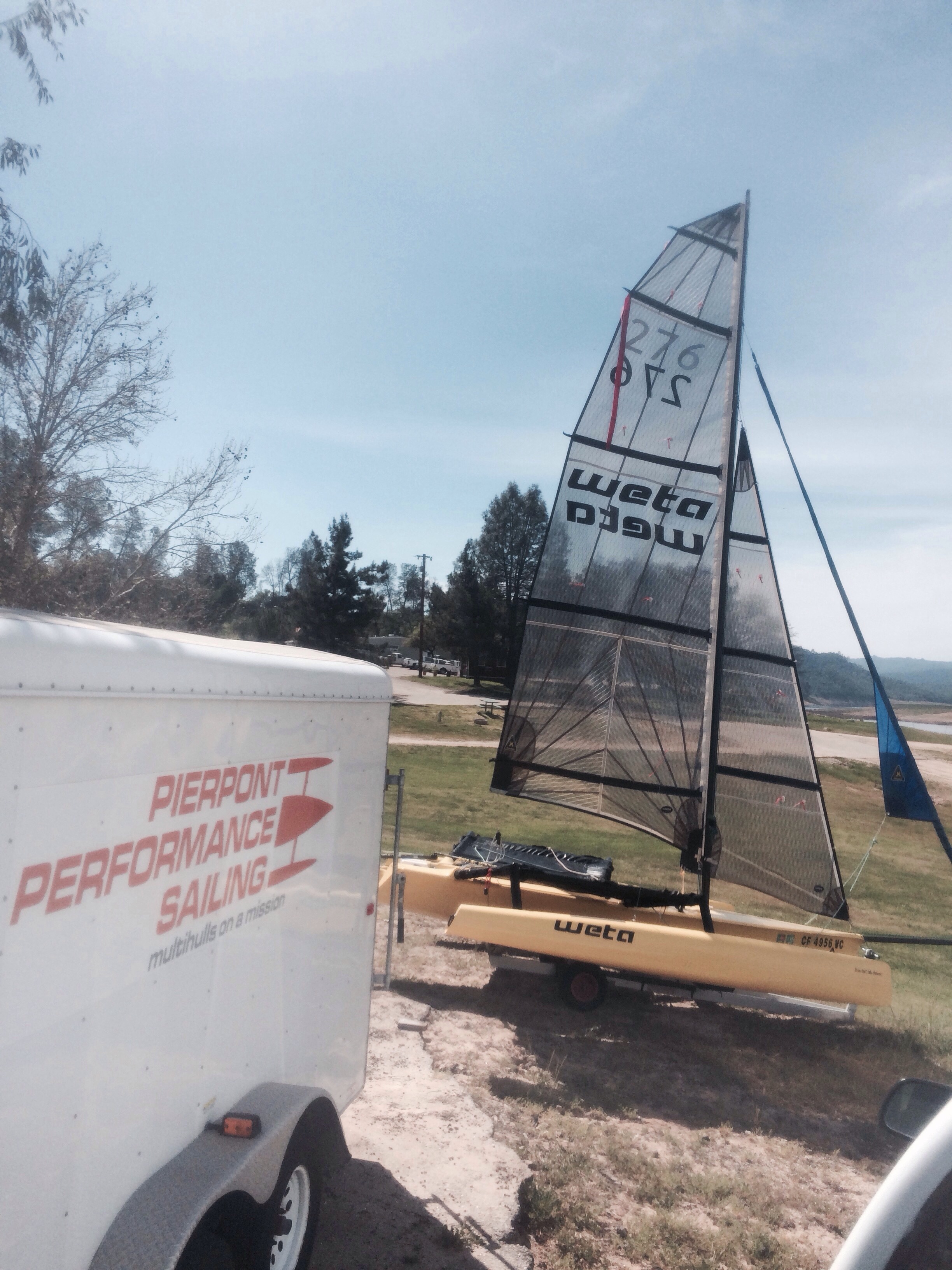 Got my hat handed to me in the match races by Bruce the Weta class prez with his yellow boat, but learned a bunch. Great weather, good camping, delicious campfire dinners and really swell folks to go with gusty air lake sailing. The Pierpont guys do charters of hot boats in Cal and Mexico, including single berth slots on events like the Newport to Ensenada and Baja HaHa. Good stuff – at PierpontPerformanceSailing.com