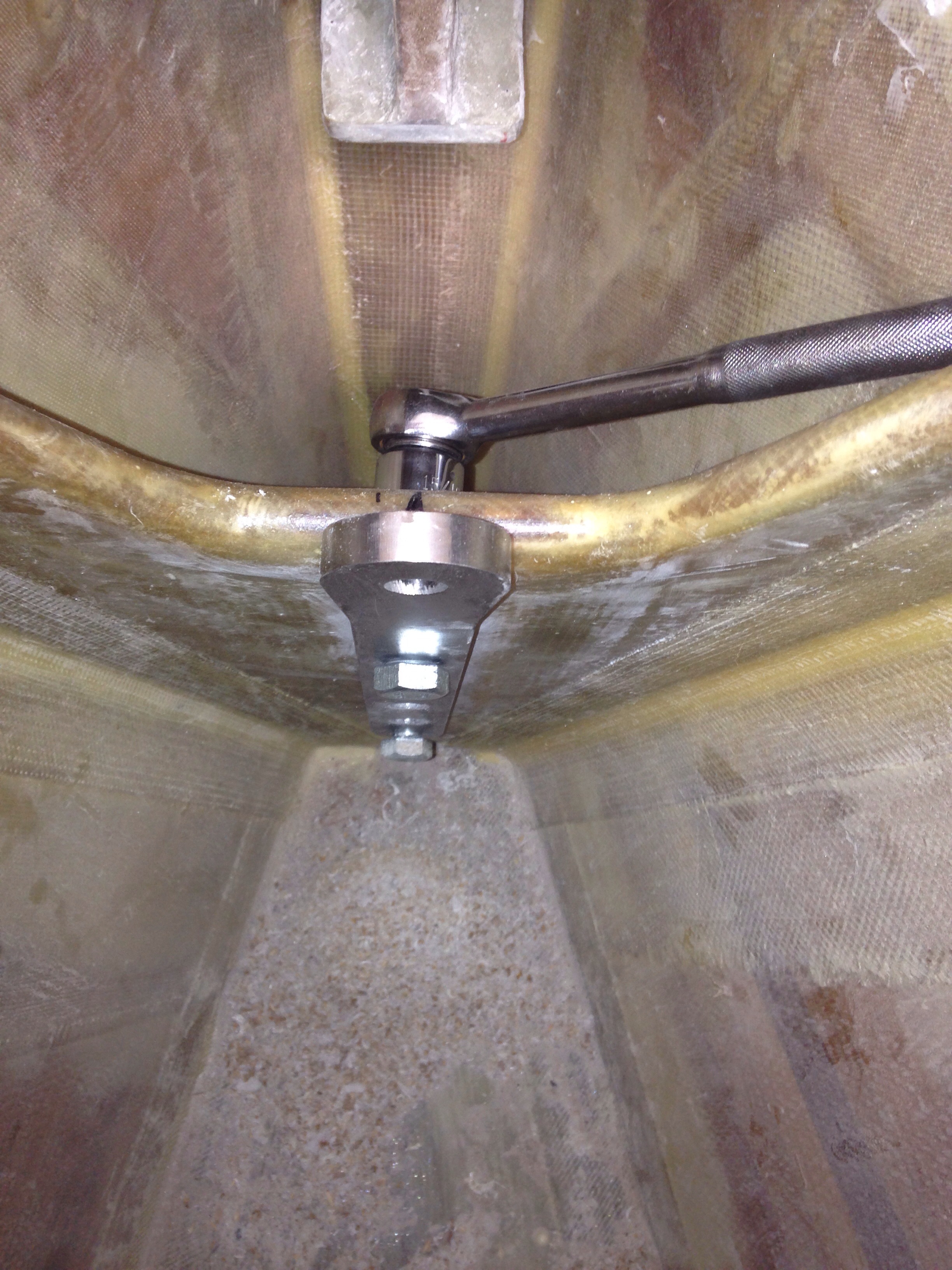 It was over 90 degrees up in this corner of the shop, with really bad angles for the installer’s knees, etc. After many foul words uttered and about an hour and a half all holes were lined up and the plate successfully dry fitted. It’ll get bonded in once the right bolts arrive.