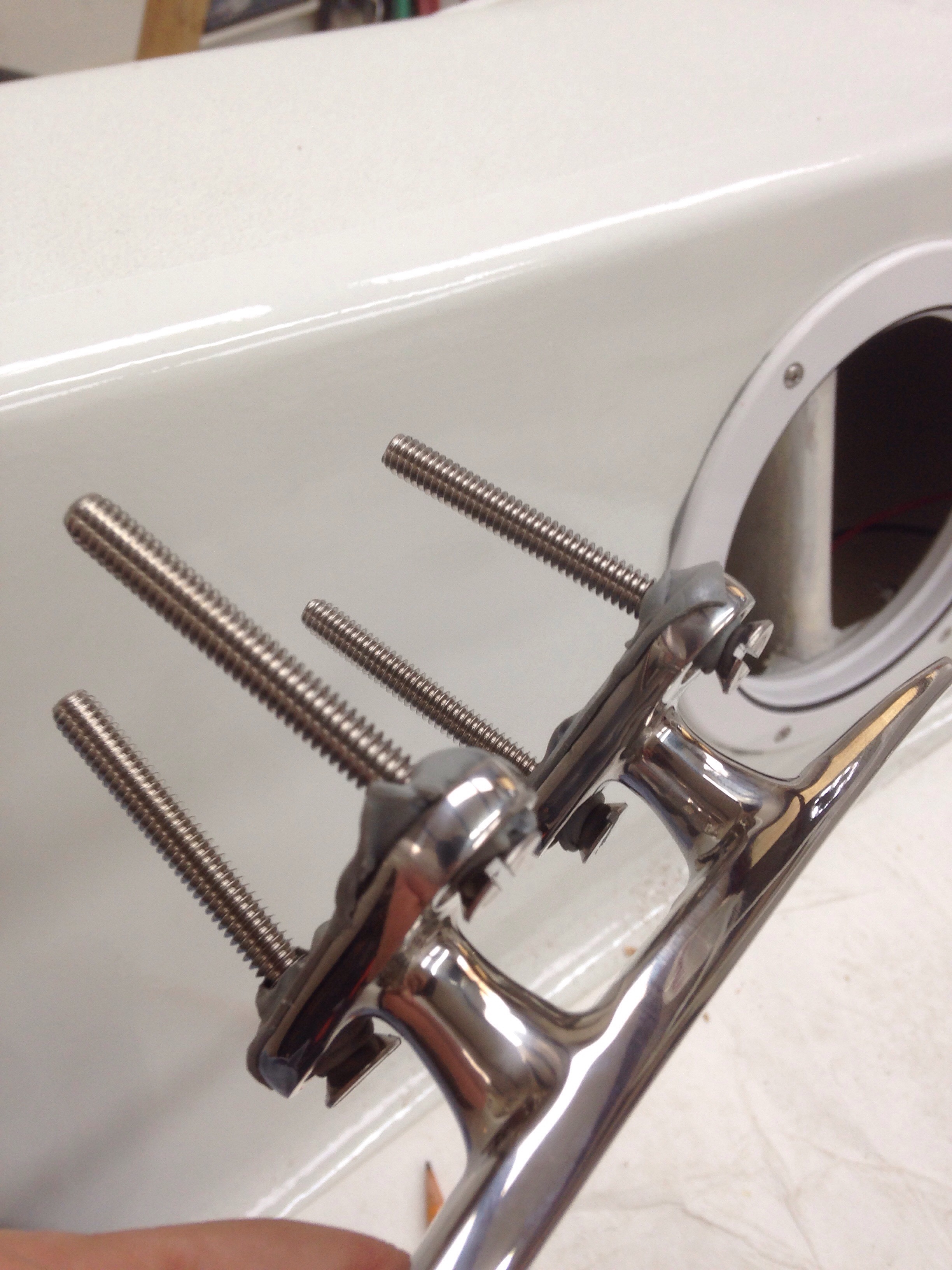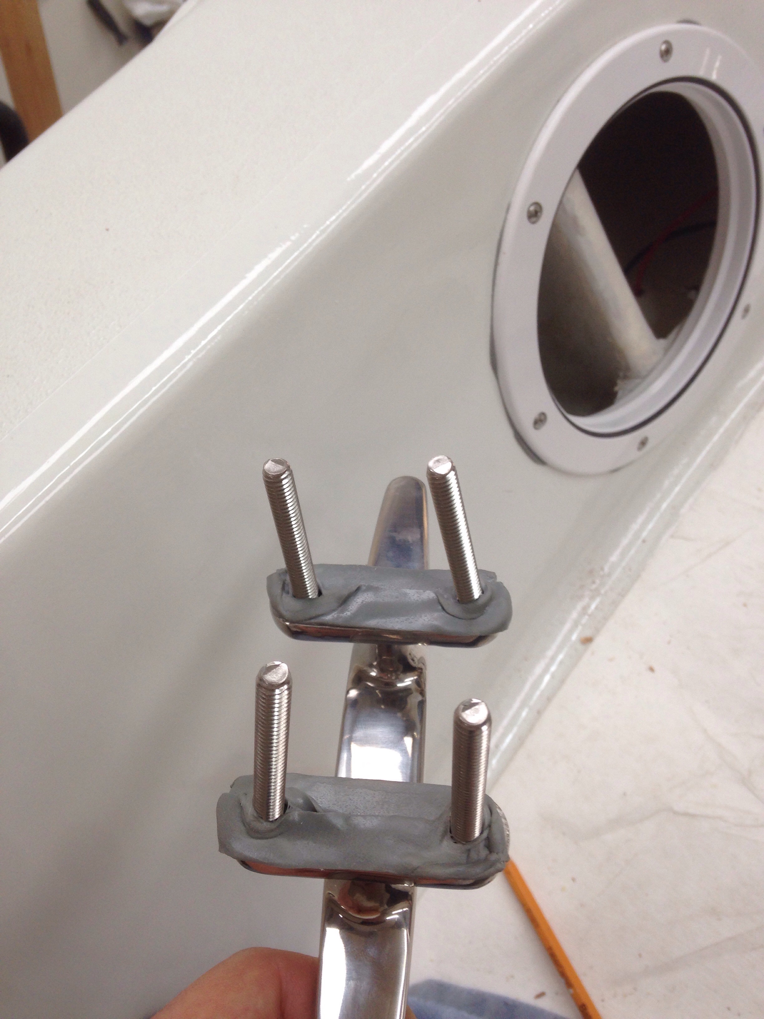 Back at the shop we had a big weekend of putting stuff together. There are 7 thruhulls; 3 below the waterline and 4 drains for sinks and pumps. First some BoatLife bedding caulk…