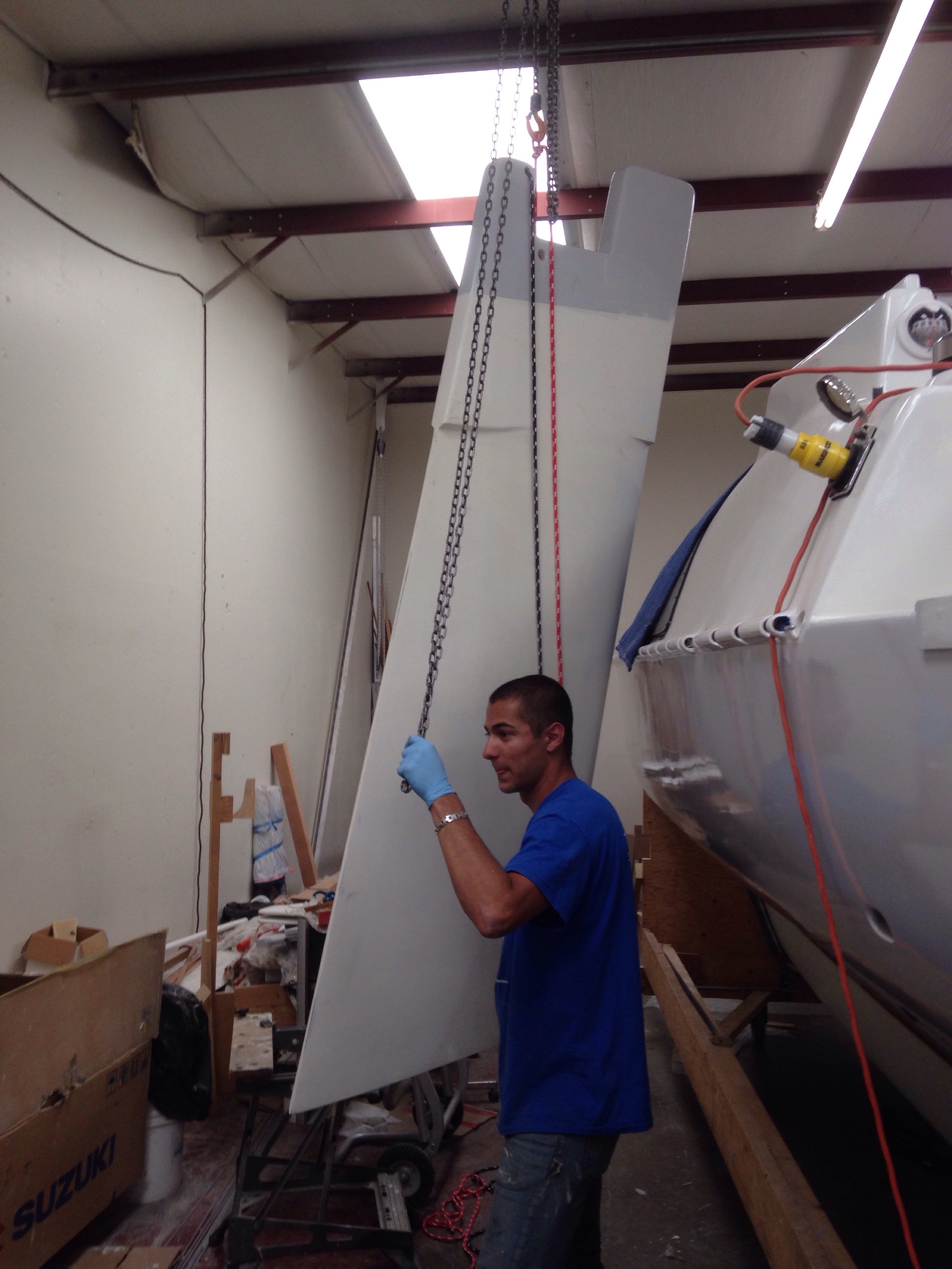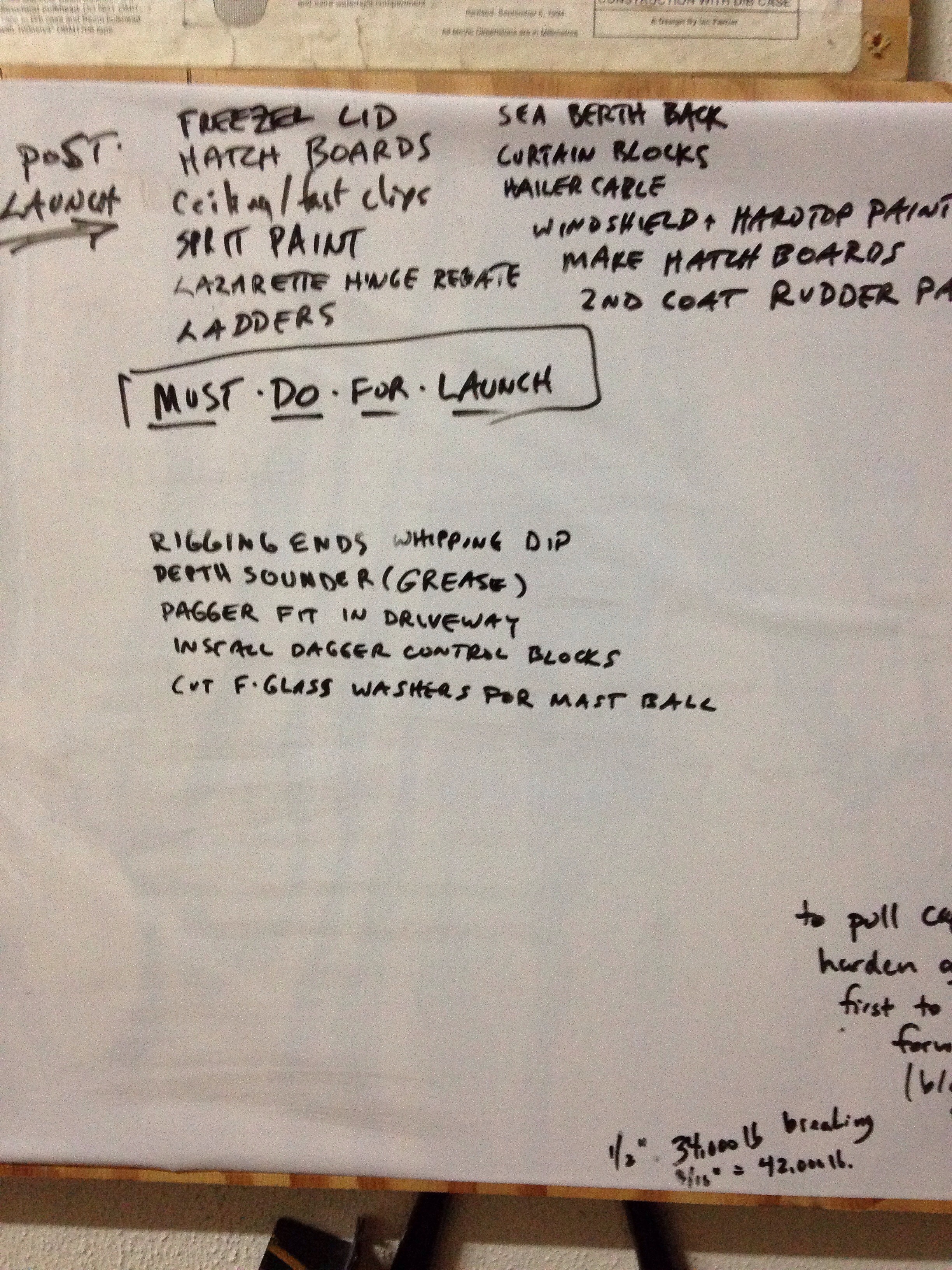 But back to the top. The daggerboard “sticky wicket” emergency shop work led to an anxious Sunday re-install.