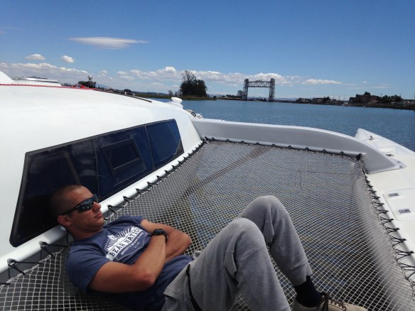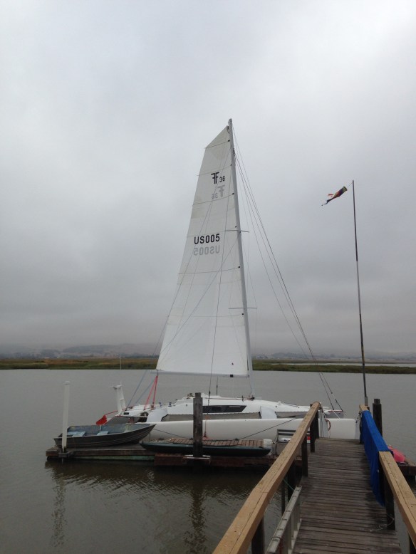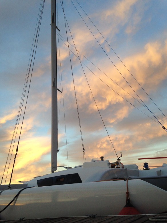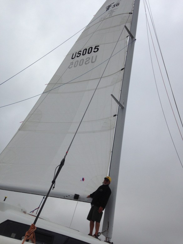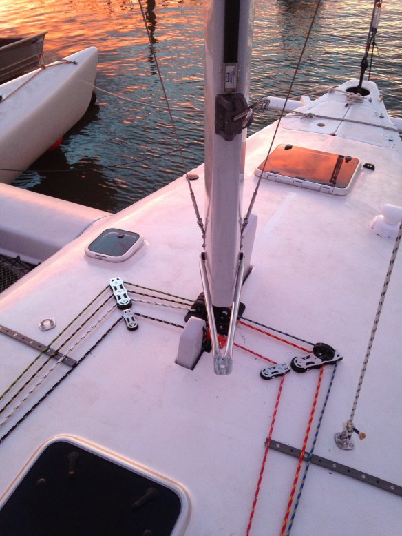 It’s amazing seeing a big mast rotating freely in the breeze – so foreign to the monolithic columns of seeming sturdiness that most associate with sailboat masts. A wednesday evening sail aboard Mile Leneman’s big fast cat Minette prepared me for today.