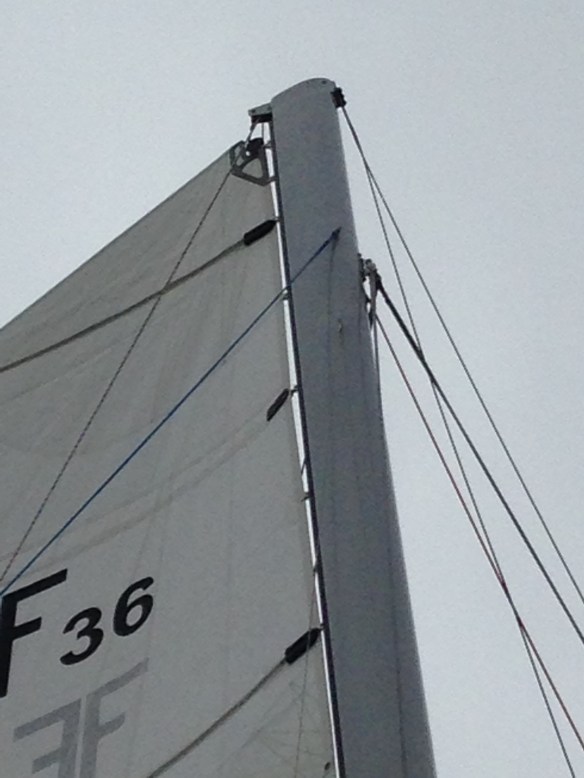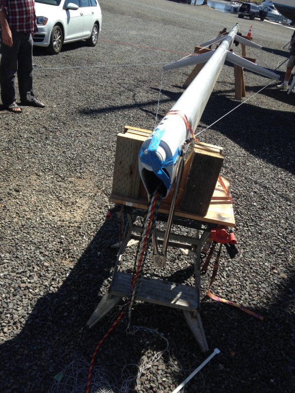 And two years of making sure the halyard messenger lines didn’t get trashed in the shop or transport. So happy when all five halyards popped out the bottom.