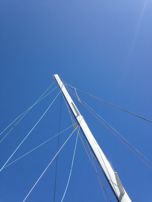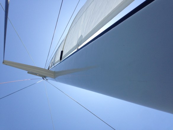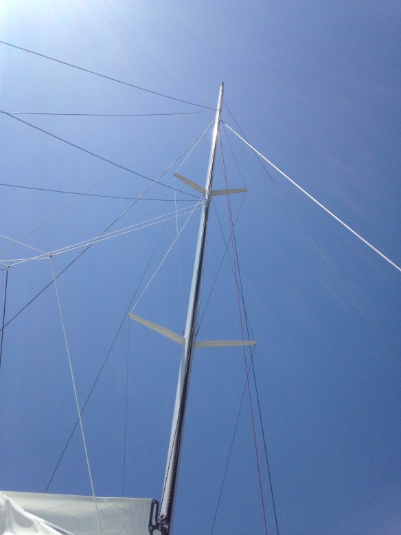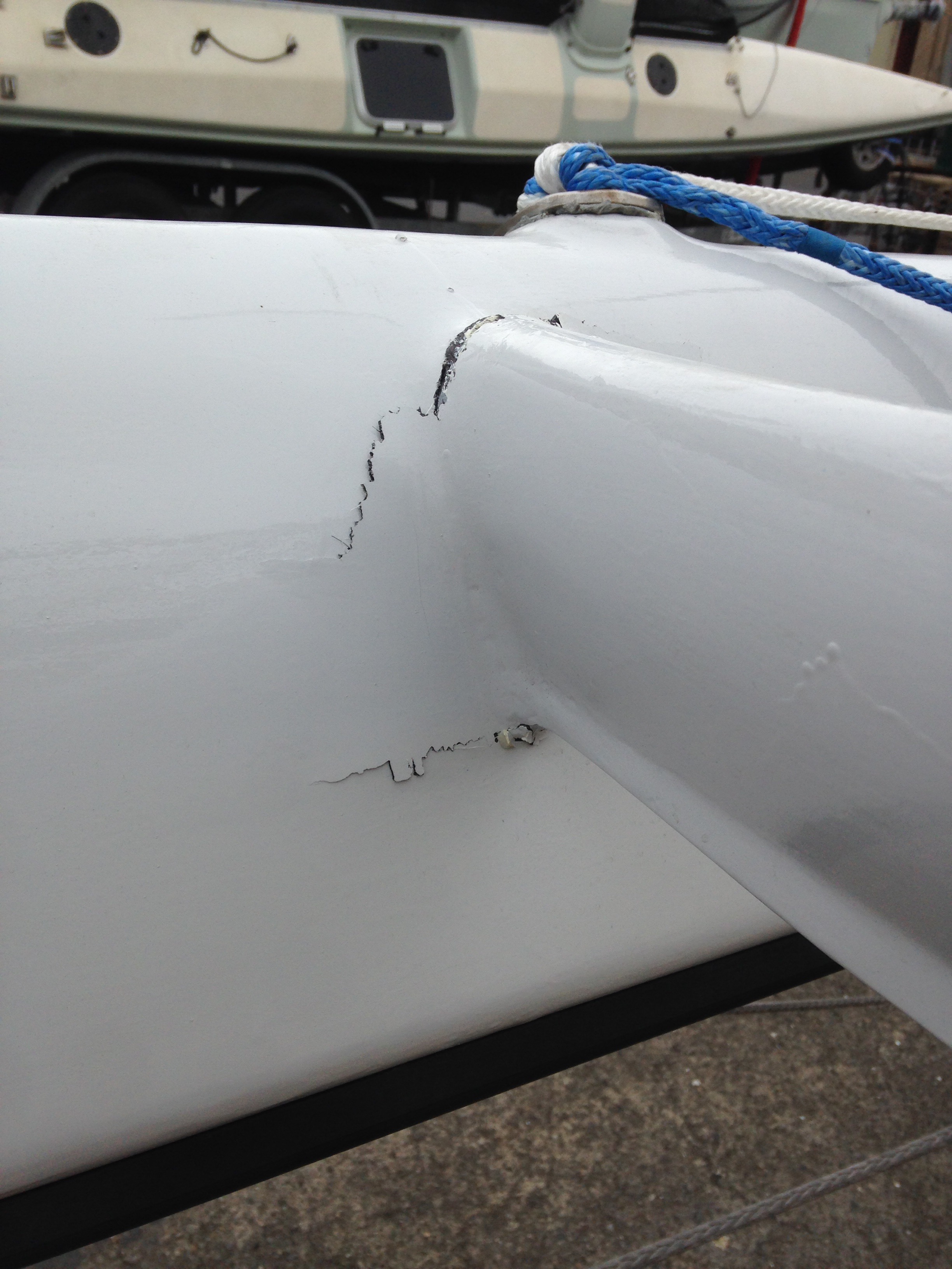 Ever pull off the band aid too early and things just aren’t right yet under there? Well, looks like we did that with one of the spreaders during that heavy-wind first sail. Here’s the starboard upper spreader, which took the leeward pressure that day.