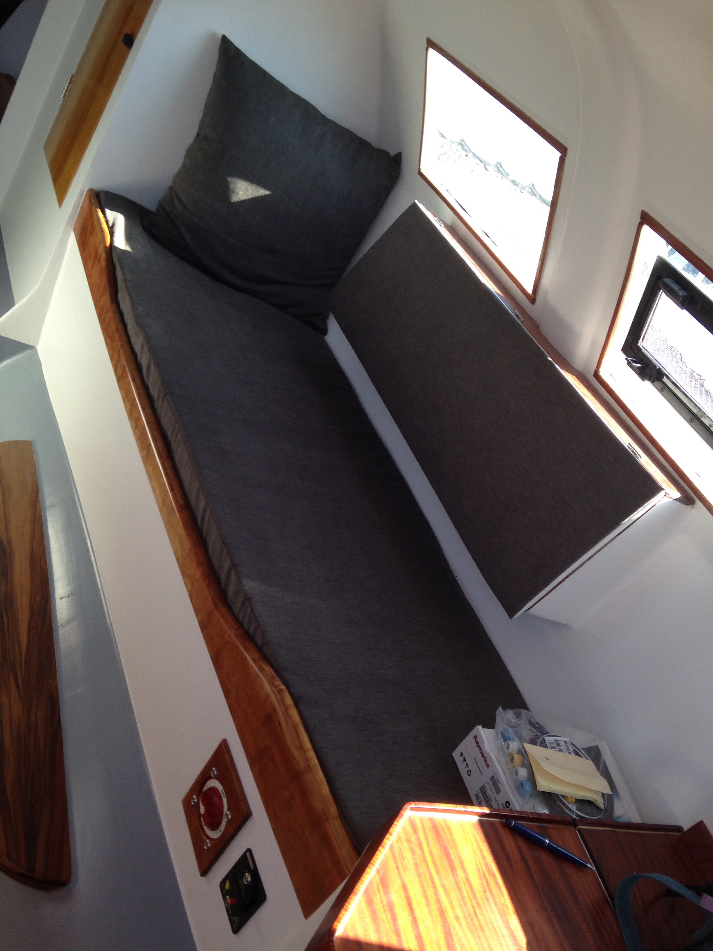On the good news front, all the plumbing was finally finished up during the weekend, so the ladies get a proper restroom aboard. The flexible/rubber water tanks are working fine, and the grey water tank is in use for toilet flushing. All good so far.