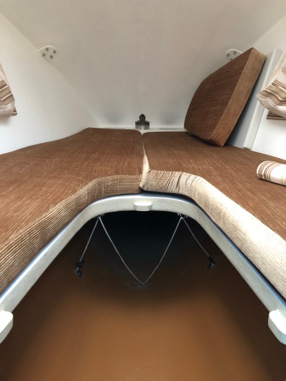 The interior is clean, comfortable and simple. Everything inside is about as low maintenance as you can get; it’s meant to go sailing long distances and not spend time fussing with gear.
