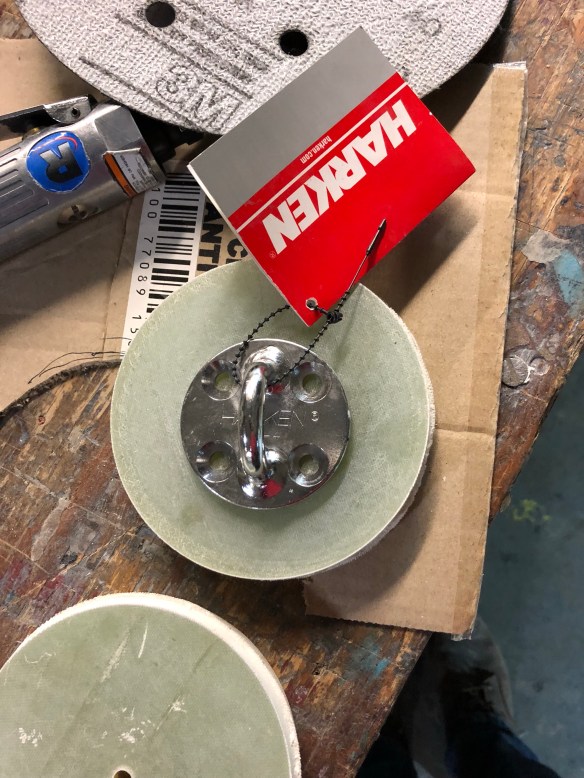 all Sat afternoon went in to fitting the mast foot. That included over 30 threaded taps for the 5/16″ screws, plus the 8 in the nose piece. Led to rather sore wrists. The foot is ready for final installation but Will asked me to wait until we get the lower terminals for the diamond wires sorted out.