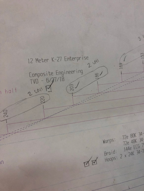 Tonight they are barely tabbed on. Tomorrow we’ll do significant connecting reinforcements. And as both Keith and I have ripped carbon spreaders from a big mast before, yes they will certainly get uni-strapping that connects them around both the front and aft walls.