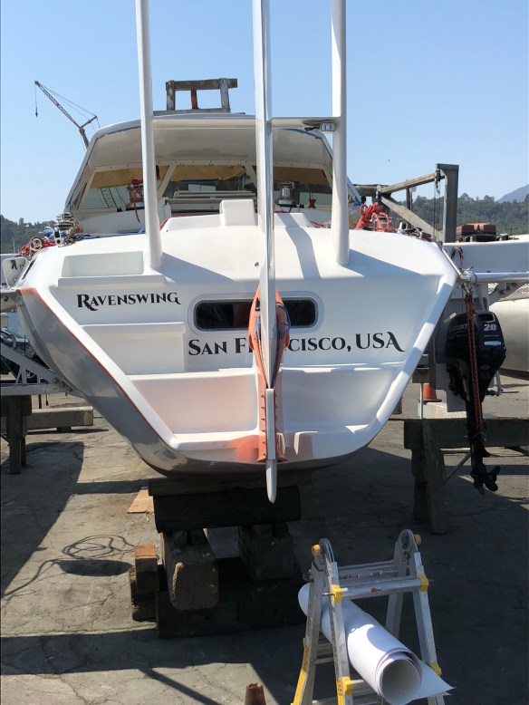 For whatever reason, it took all these years to finally find a style for carrying the boat name out to sea. We’d get close, but disagree a bit as a couple, and put down the pens for a few more months. This afternoon the co-owners instead struggled with getting the vinyl transfer done. But then you set down the squeegees, step back 20 paces, and enjoy the view. Hope y’all like it. We do :)