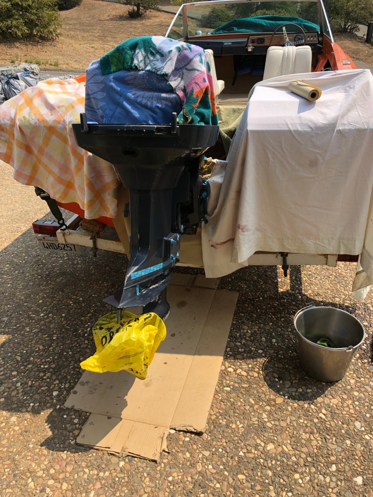 > cartersboat posted: ” It wasn’t quite right looking, that ’90s motor on > the ’69 boat. So Griffin realized the motor hood should be white, the way > they used to do it. Good call. While we’re at it, might as well fix the > various paint flaws all around the whole thing. ” >