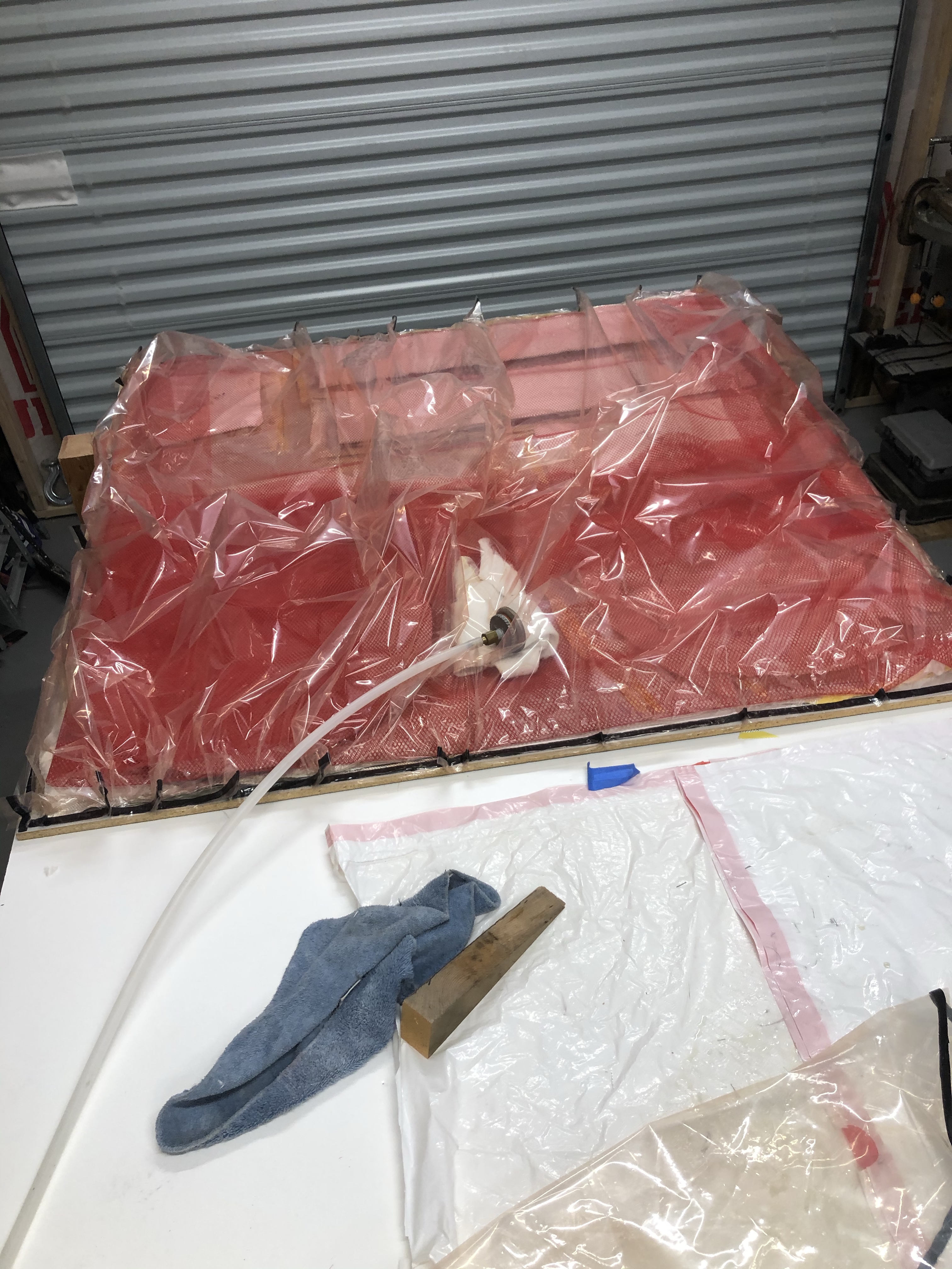 The idea is to make various bits here at home and take these projects to the boat in Mexico soon. Tonight the vacuum pump is running while these laminations cure.