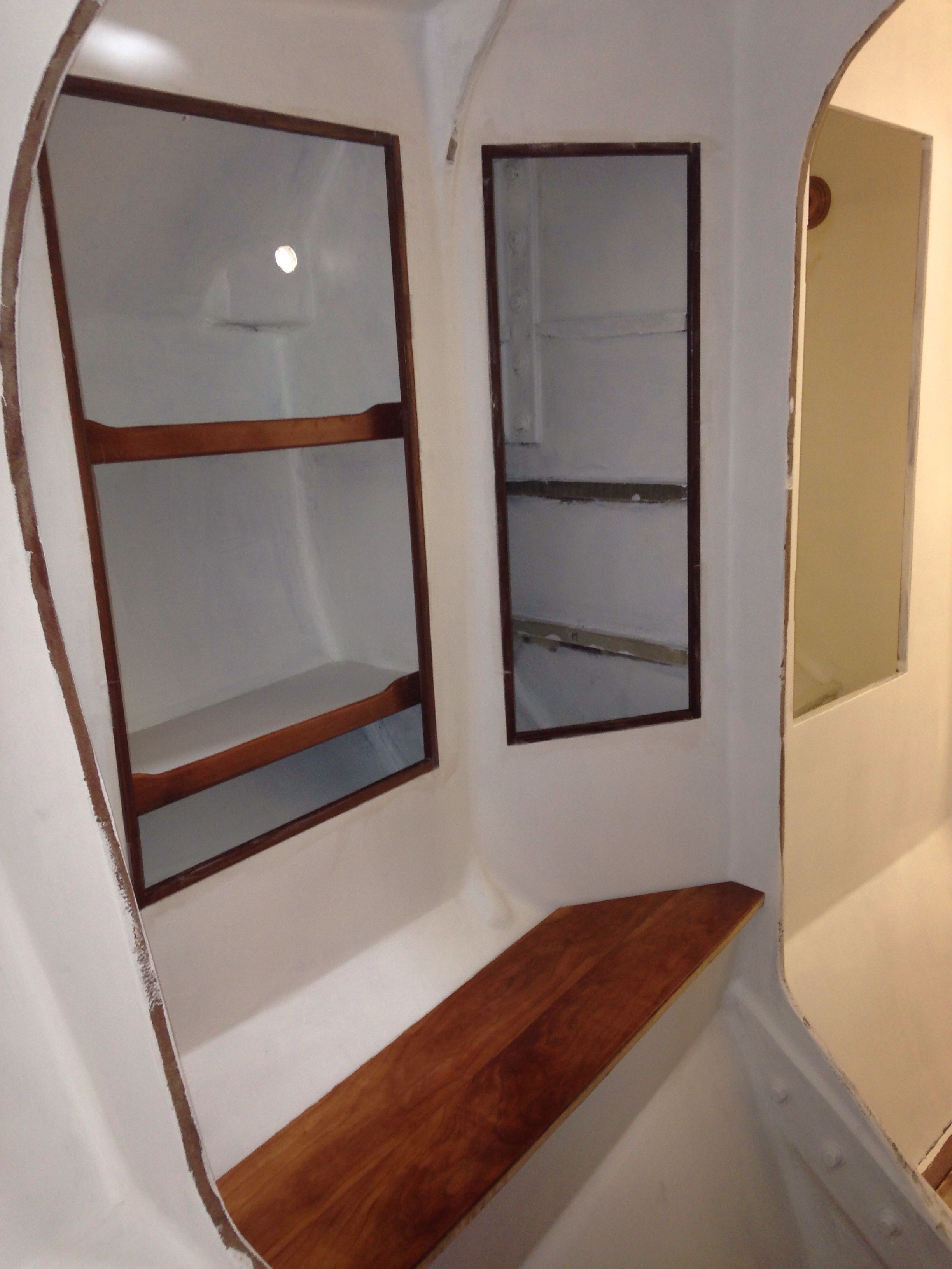 And here after a sanding pass and second coat added. These will get sanded again, and fairing touch ups tomorrow night if needed. With that, all the main hull fabrications will finally be DONE! Through the holidays we’ll do any more needed little fairing touch ups, and get the first of the primer started.