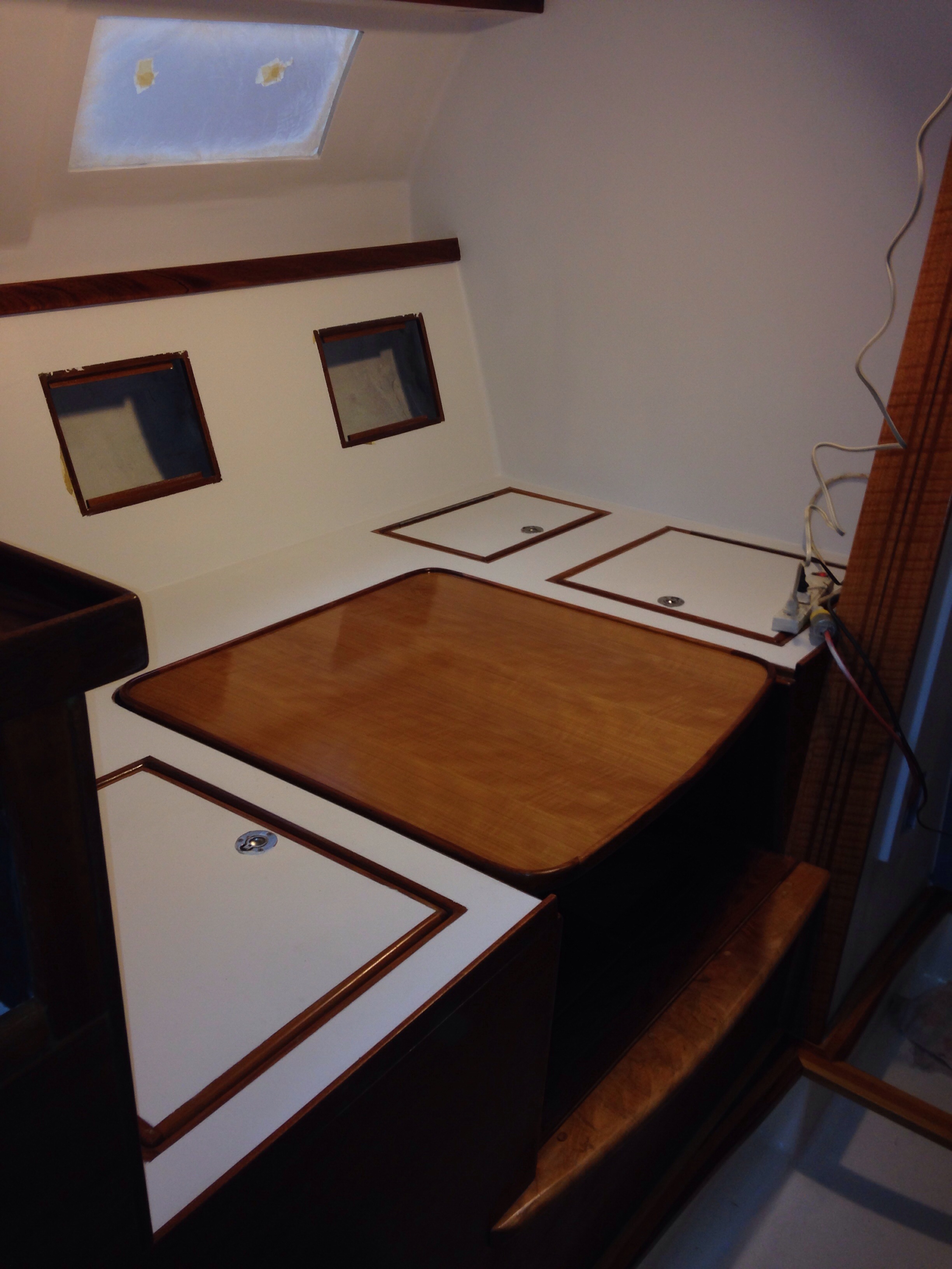 Charlie, that’s a recut of the aft cabin companionway ladder you and i designed over a Subway sandwich in Santa Rosa five years ago. Time flies.