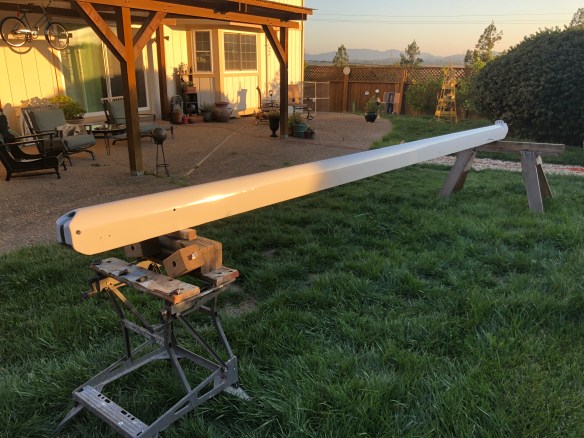 what the heck? And what is the “.com” logo? Keep unpacking it and OMG, Stephen has a KiteShip kite sail basically brand new sitting in his garage for years. These things fly from very long sheets above the mast. They made a run at America’s Cup and Sydney/Hobart, etc. But the company is gone now. I’m not going to tackle this beast for Ravenswing, but want to try this out on a large ocean boat. Anybody in? Go search on kiteship and you’ll see what it’s all about. Meanwhile I’ll get ChrisH to help test the two spins on Friday and hopefully one fits!