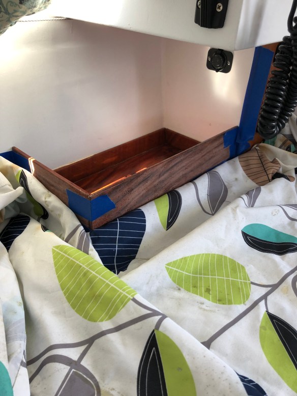 Holy cow, it’s hard prepping the boat for ocean voyaging while also finishing building the thing! We’re extremely motivated by the thought that the tools will only grow farther away with every coming sailing day this fall. So now is the moment to finish those little bits!