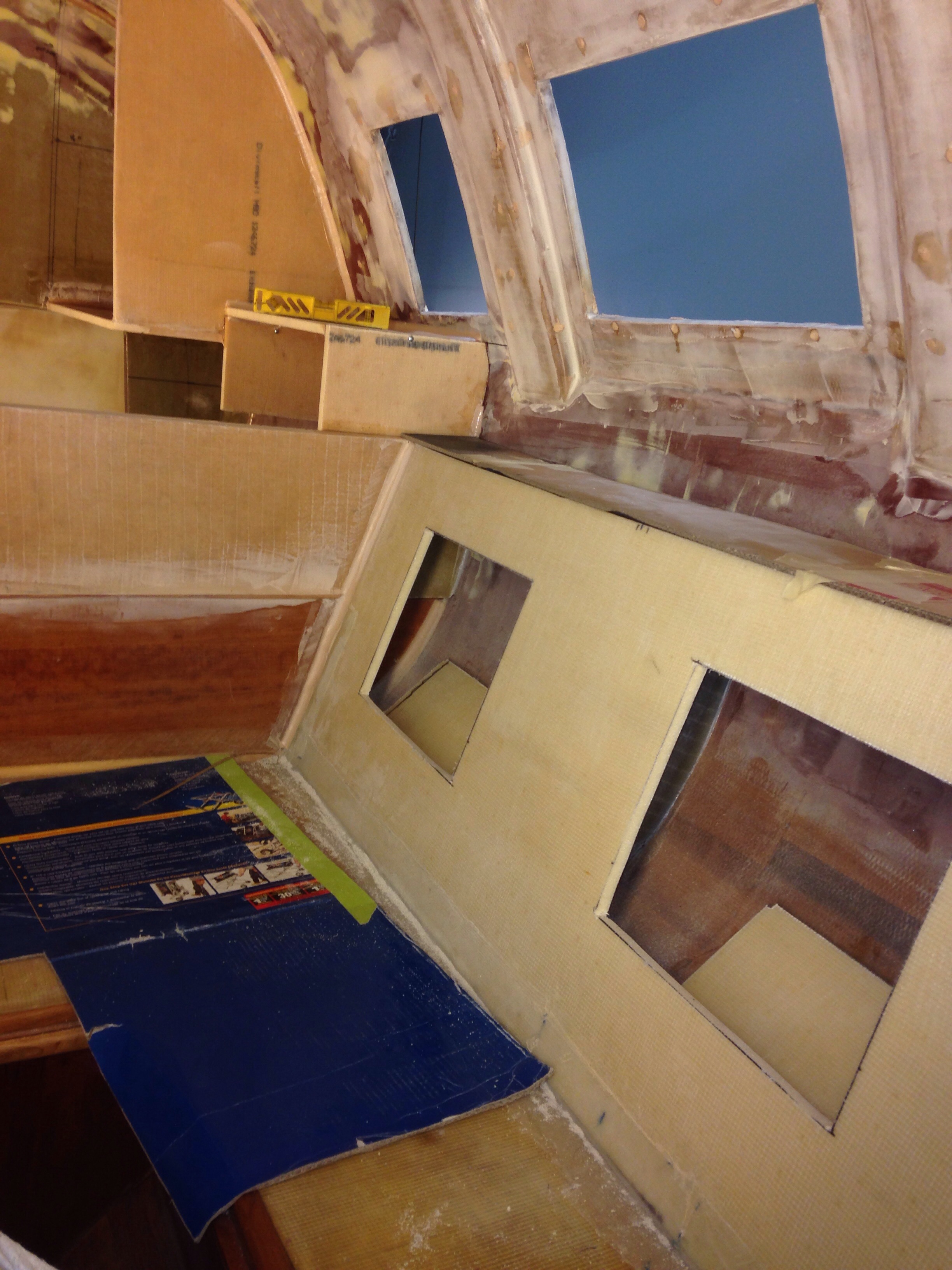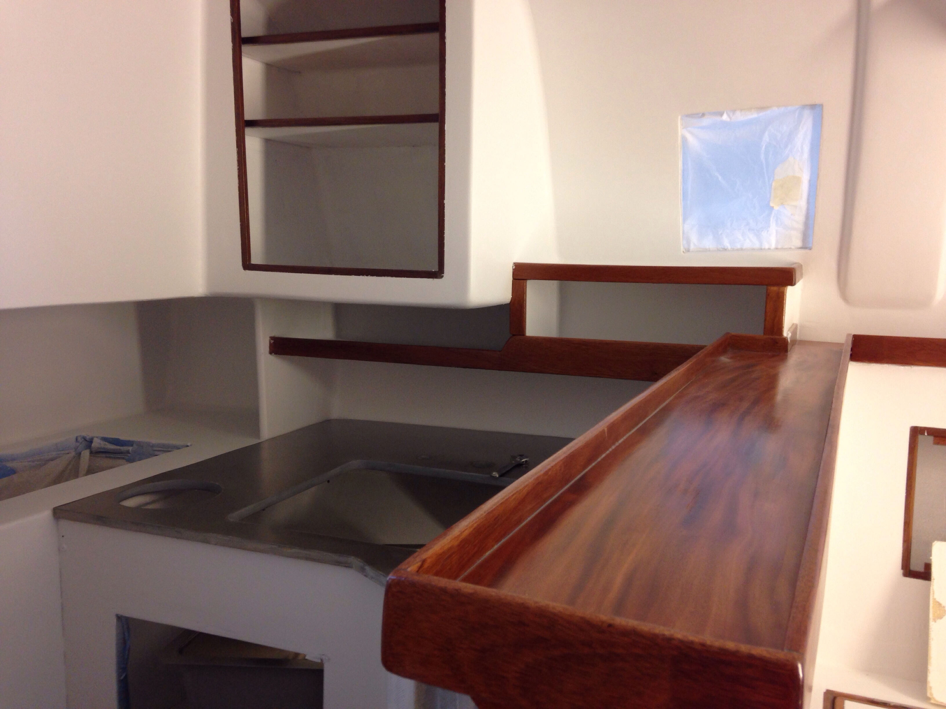 Here’s the galley countertop – the darker yellow foam is high density for the faucets area.