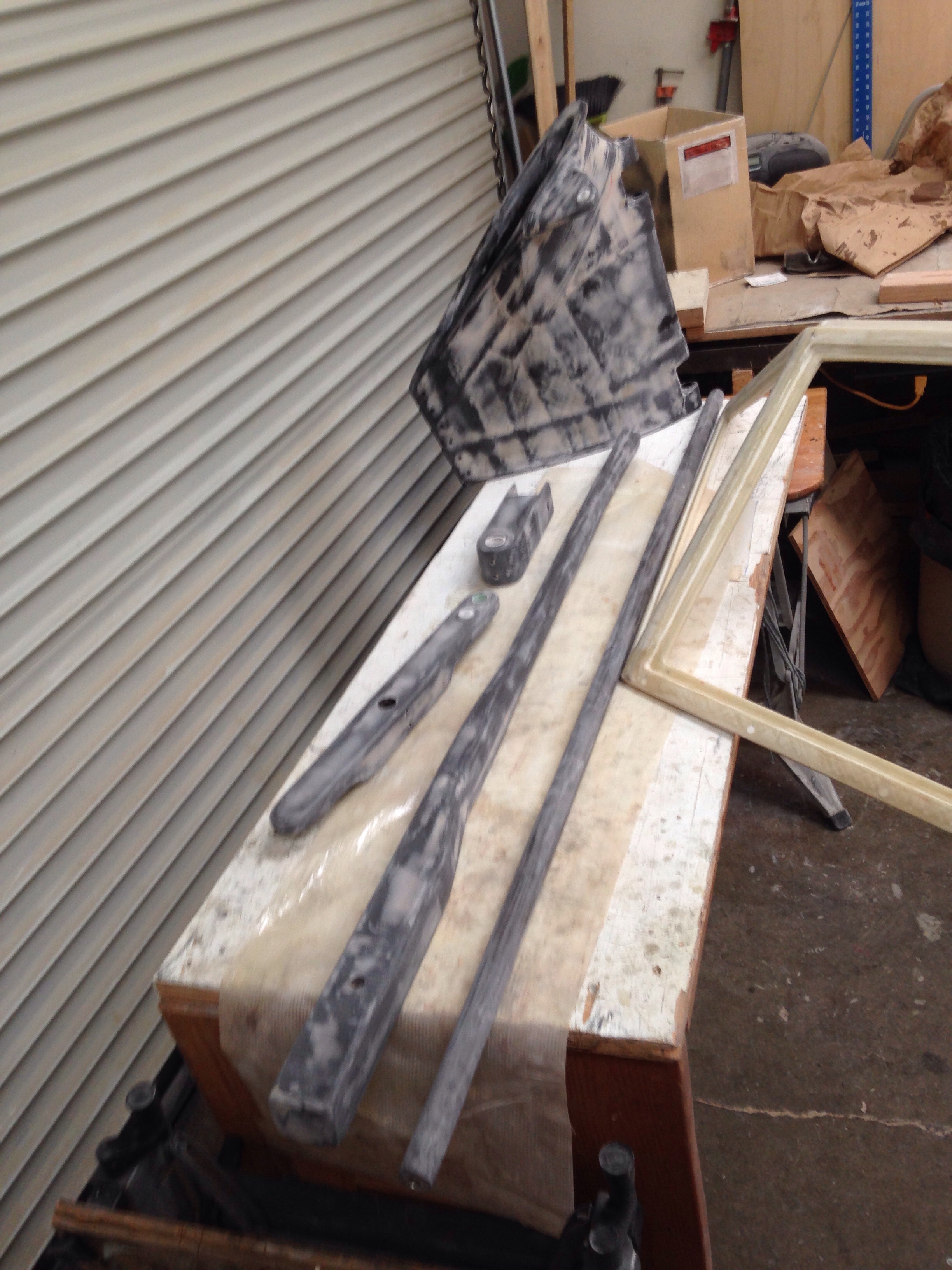 And that’s the edge of the windshield in that photo, also FINALLY ready for paint. So much fussy detail sanding and fairing on that intricate big part, and it was frustrating me so badly that I set it aside for months until Charlie came along with a fresh attitude and tamed the tiger. Thanks man!