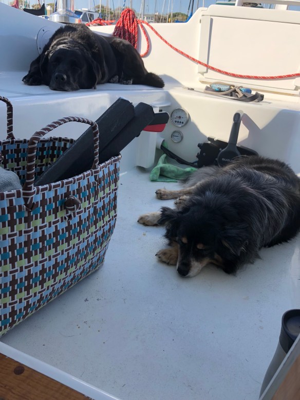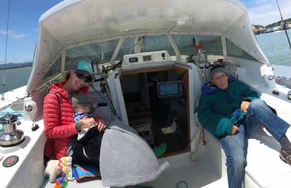 Reefed main, no jib, Autopilot and a light breeze made for the perfect mellow day for granddad/grandkid. The siblings enjoyed catching up too. Some day, Westley, I’m sure you’ll be shaking out the reefs and calling for the big Ravenswing spinnaker!