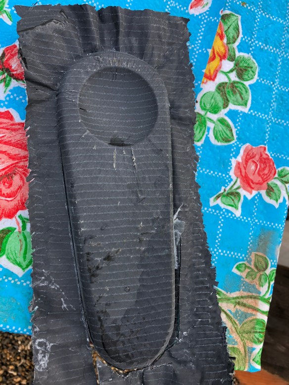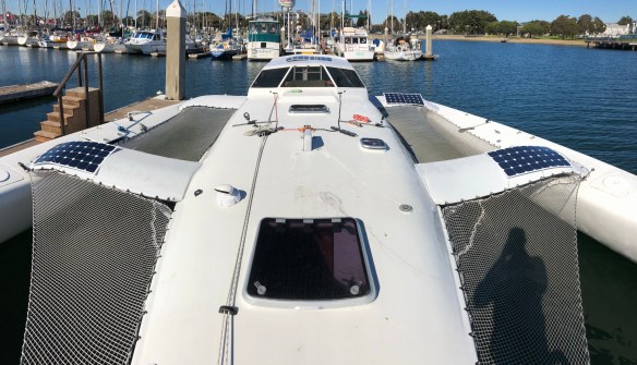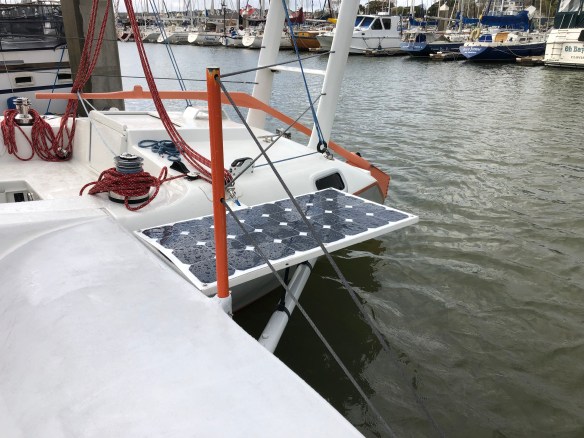 The prior post left you wondering how the upgraded solar panel mounting would turn out. That went well, although it did take a couple more days. Here’s that “trough” of glass/carbon cloth put to use:
