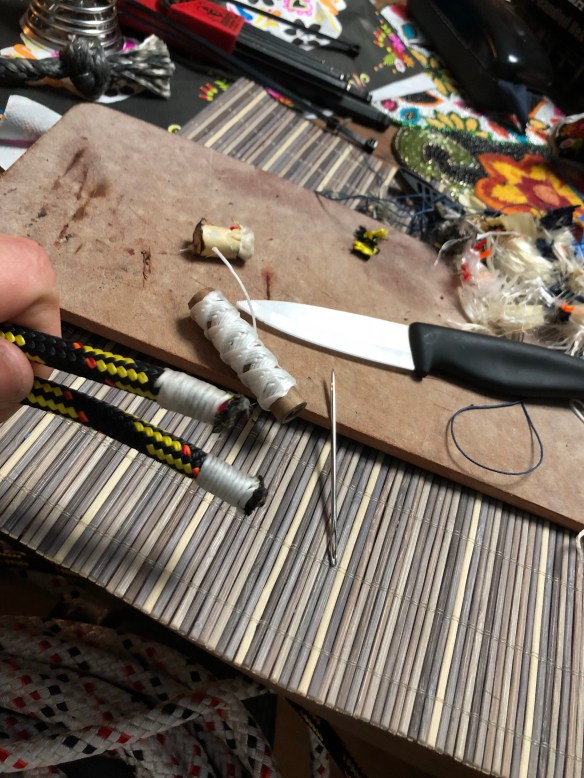 Working from home? Virtual desk? We’ve realized it also means working on your boat at your house but your boat’s in LA. The final pre-Mexico punch list includes time on the sewing machine. Recall last month leaving the Golden Gate, the Pacific ripped away our Lifesling bag. Too stubborn to spend $100 for another bag that will just degrade in the sun, we watched the Sailrite how-to video. Came out pretty good.