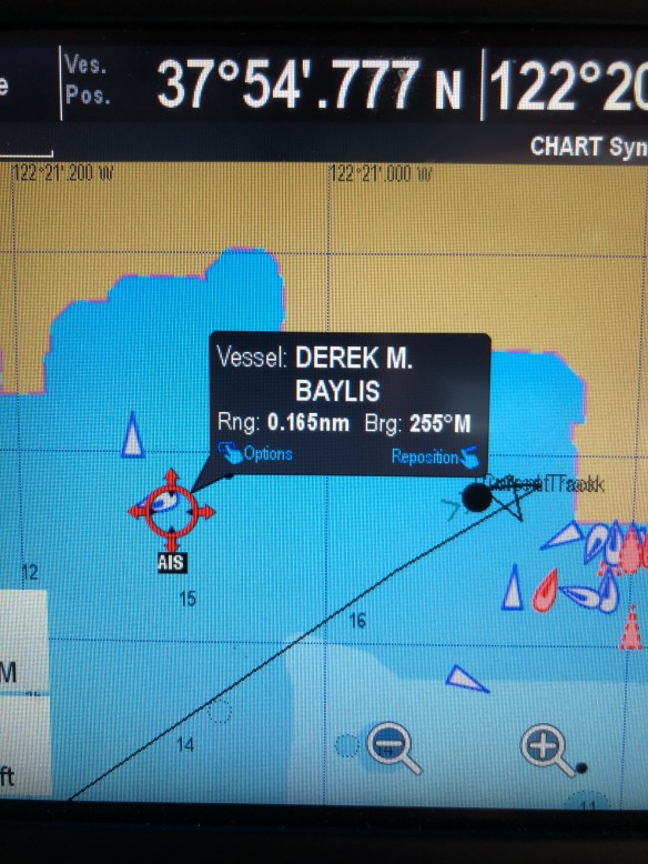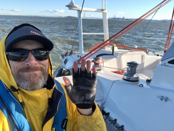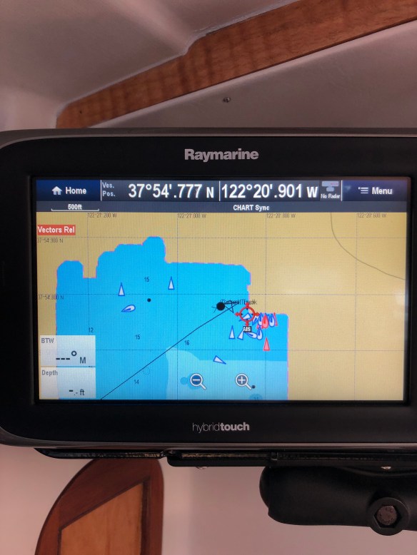 A week back four of us sailed out the Gate and up to Duxbury Reef in light wind. It was great just to have a mellow, mindless sail. But by 4pm the wind died way down for our slow cruise home. It was the first time docking in the dark, and yea, we didn’t quite catch the dock cleat on the first pass :)