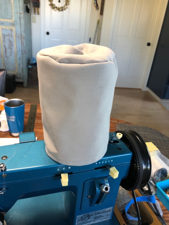 The forward V-berth has a nice foam mattress but it’s been a total pain to try making it up with normal bedsheets. Step one is a set of proper cushion covers. The co-owner had earmarked a roll of upholstery fabric for giveaway. It was the perfect amount!