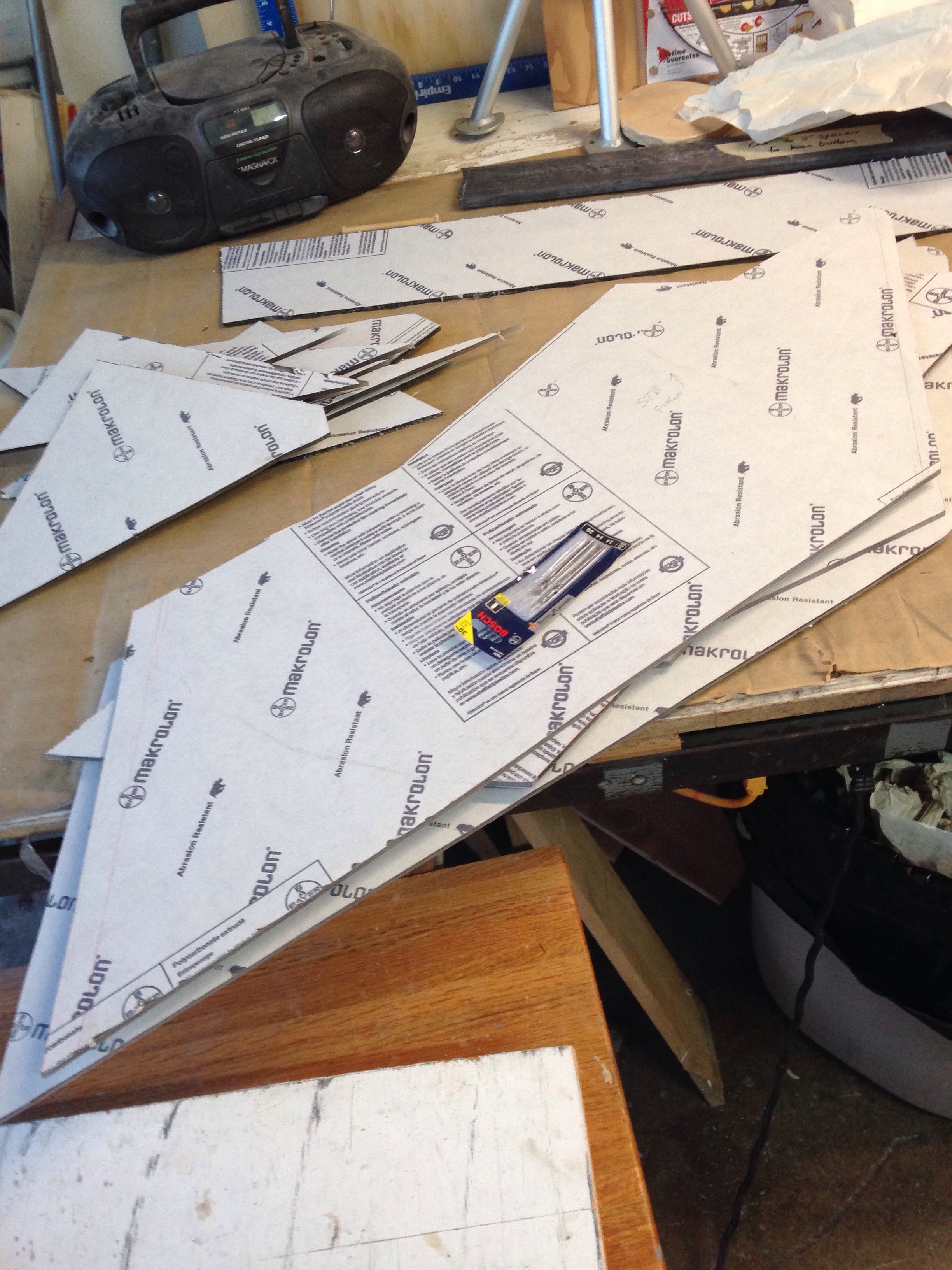 On to the view. Last year Charlie and I drove to Sacramento to get special scratch resistant Lexan (polycarbonate) for the main cabin fixed port lights (Windows). Unfortunately the many holes were drilled to the original plans before I read up on advances in adhesive products. We don’t need all the bolt holes! So I decided on a compromise of using the 120 holes and going with screws into epoxy fill, not through-bolts. And Sika 295 UV adhesive. (Note, needed just over one tube for the whole job). First we painted the area under the Lexan to help hide the adhesive and create a more uniform look.