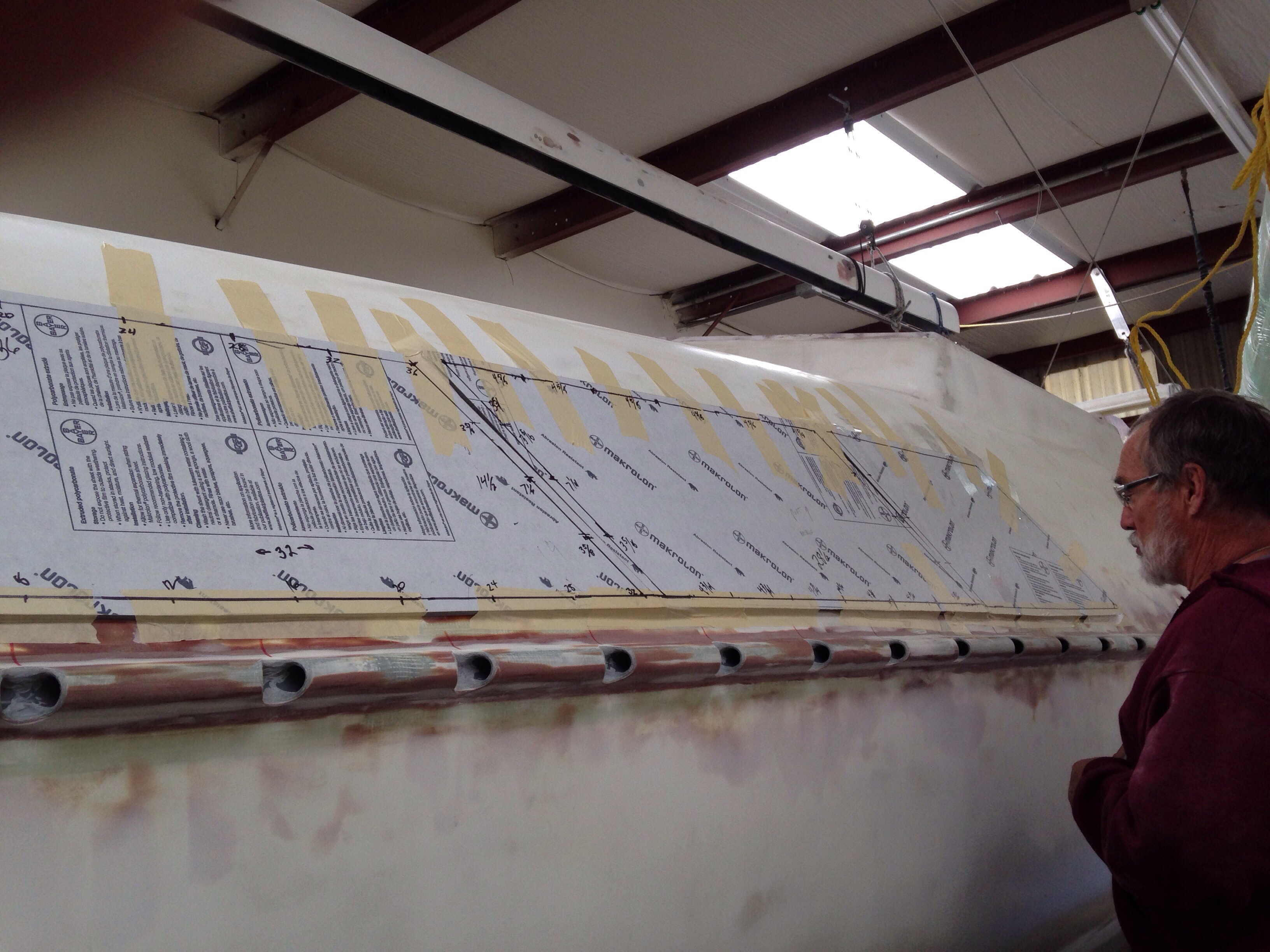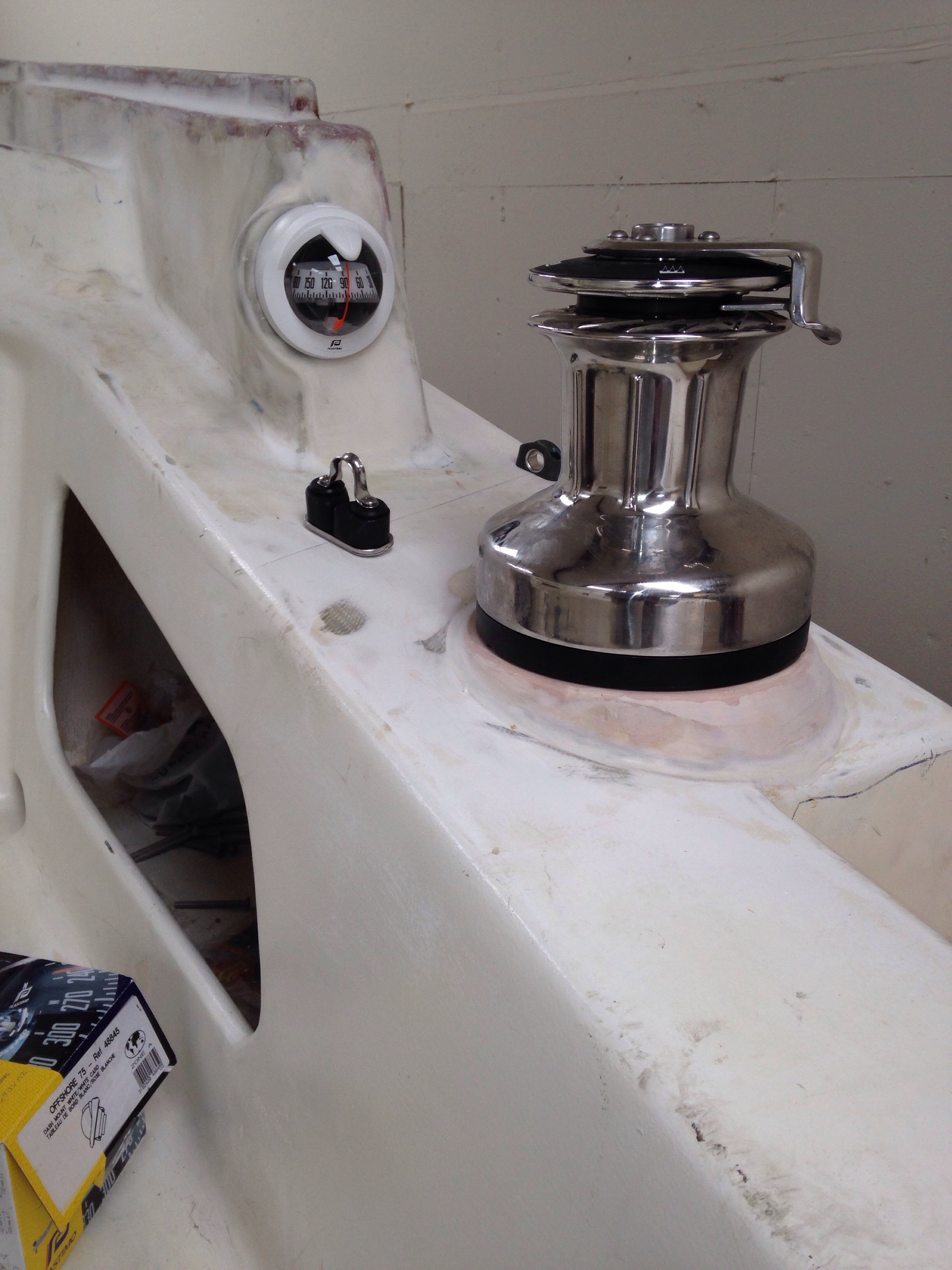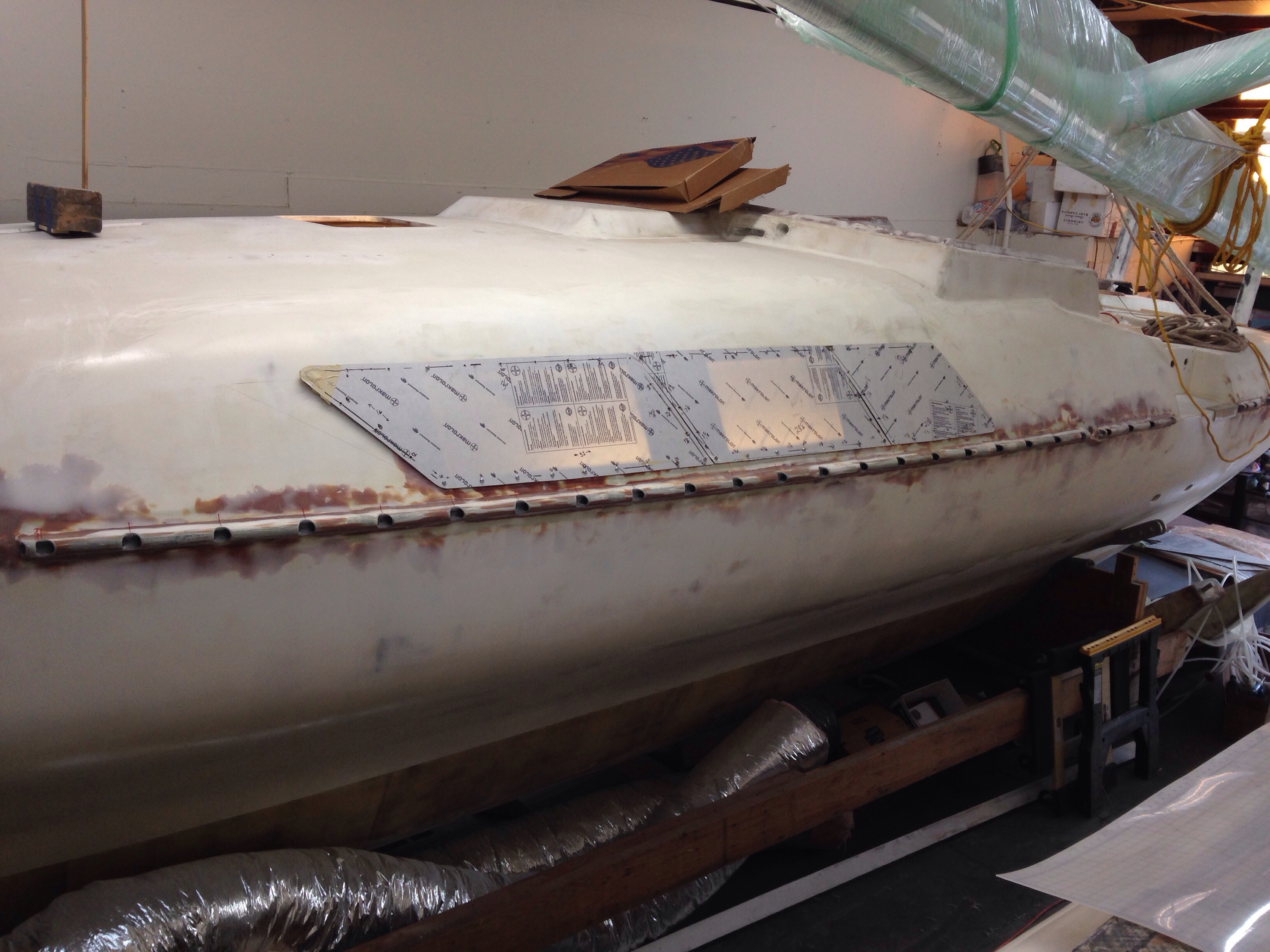 Sunday was a half day prepping and installing opening ports (2 forward, 1 head, 2 aft cabin sides, 1 transom). We’re using butyl tape – very sticky and very pliable – works great and makes zero mess compared to caulk-like stuff in tubes.