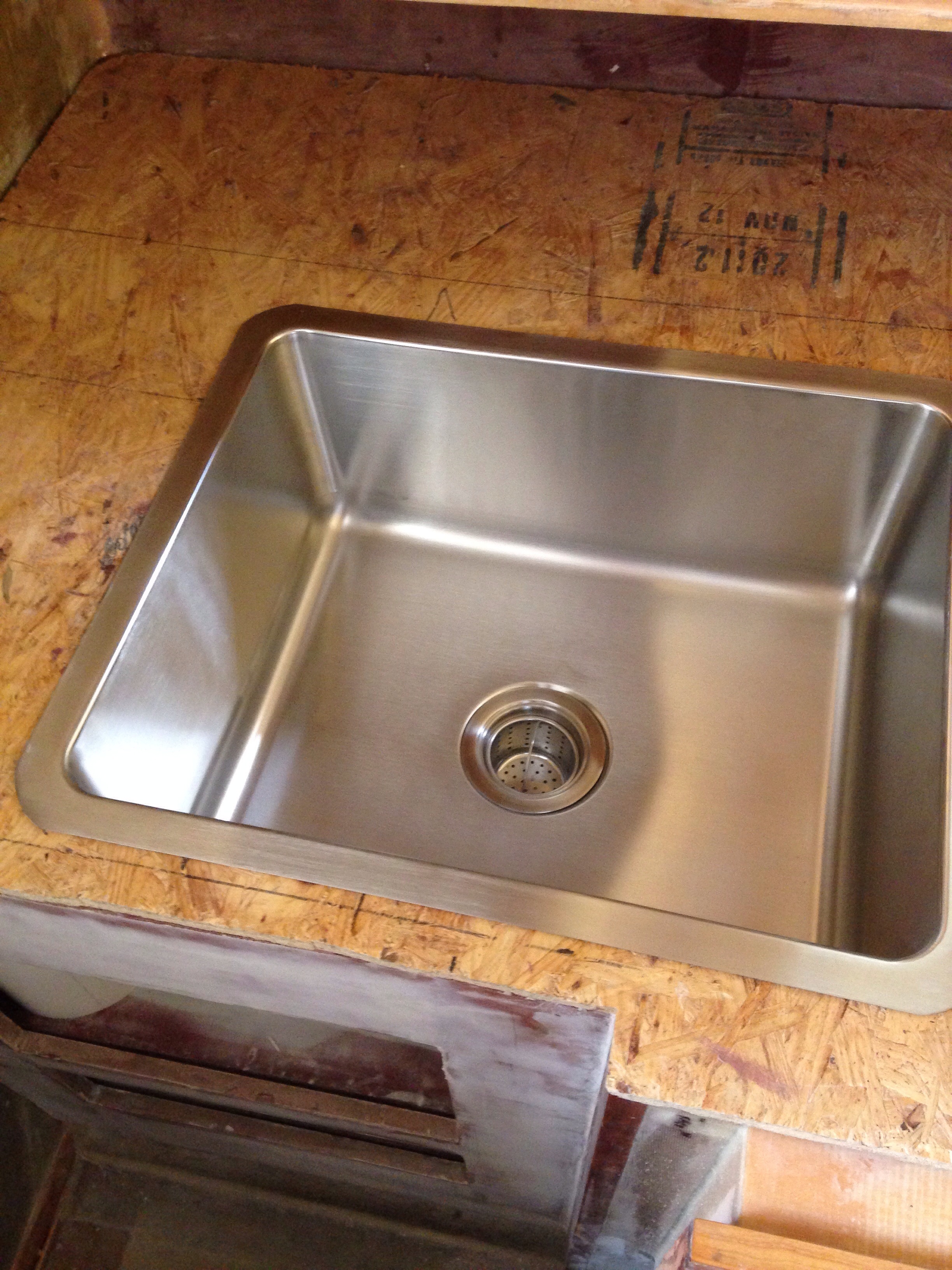 This is a Lavac vacuum pressure toilet. The flushing process is easier to understand than the common marine version. This one relies on the lid forming a seal; after use one lowers the lid and pumps the lever ten times. The vacuum pressure clears the bowl and circulates flush and rinse water. The waste does not drop straight from toilet to tank as it does in an RV; here we’re pumping up through a high loop (flooding prevention safety) and back down a heavy duty tube to the tank. We will empty the tank either with deck pump out services, or a thru hull valve below the waterline. That is only going to work while the boat is underway and moving quickly enough for the passing water to suction the holding tank. At this point we have to hope the speed required isn’t too great to be practical. Stay tuned this summer for more on that disgusting topic. Also, next week we’ll look at the grey water system that will supply the toilet flushing.