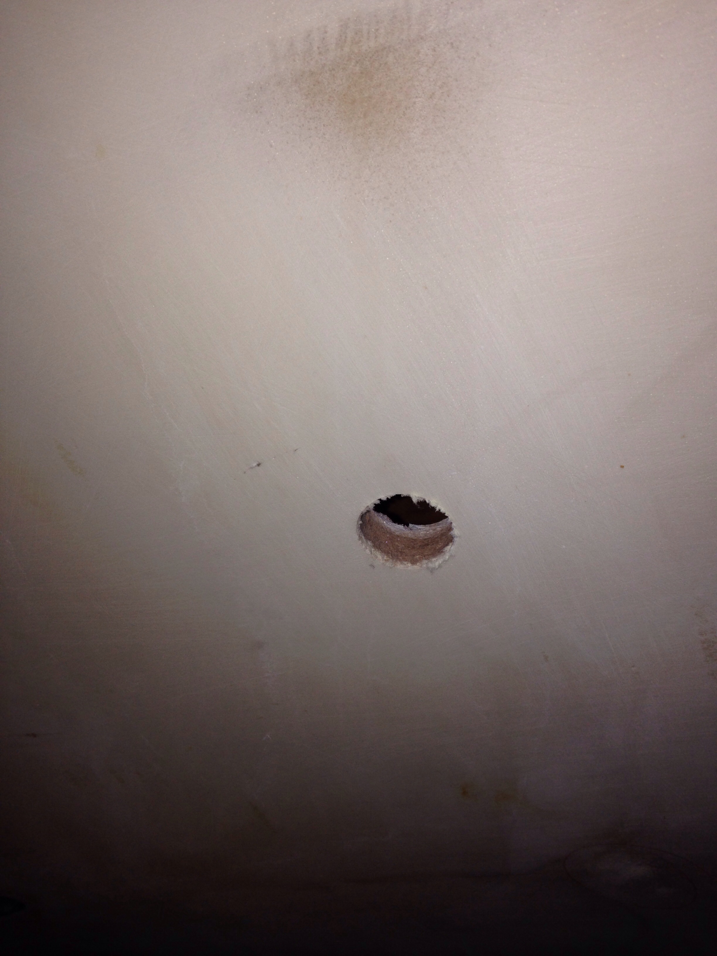 Further up the hull side, over on port, is the first above the waterline thruhull. This one is the galley sink.