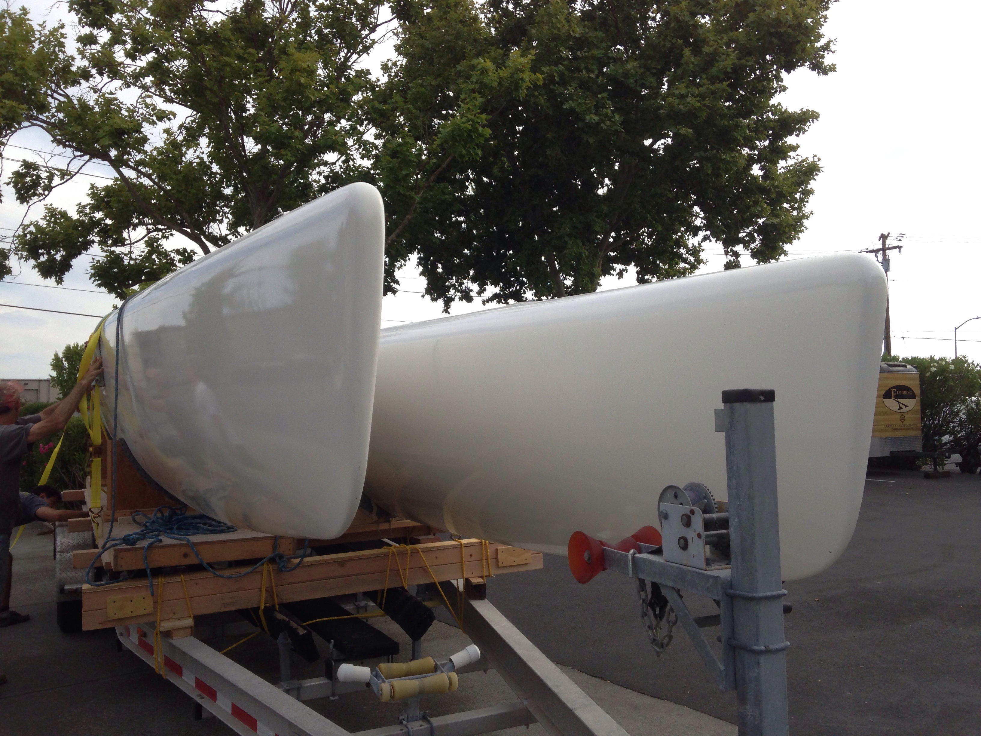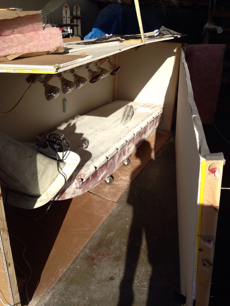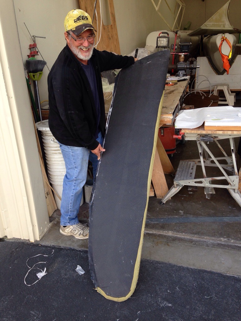 And as Jeanne’s Mom always said when preparing the fruit for canning, “I found the one we’re looking for – the last one”…. Here’s beam number four escaping the oven. Don’t ask about the electric bill. This big box is REALLY in the way, but it will stay up another day or so to bake the rudder after the last fairing work. Getting excited to start on the rudder’s cassette steering assembly!